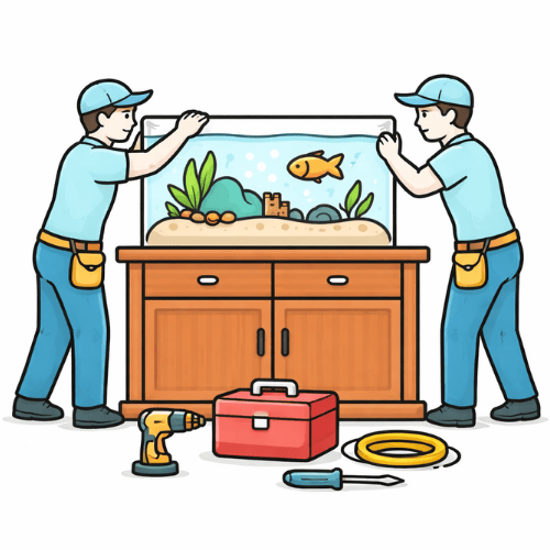 Our custom cabinetry is built in-house using durable materials like plywood, steel, or reinforced composites. Each cabinet is finished with premium laminates and wood details. We also provide 3D design previews and detailed shop drawings to ensure your aquarium setup fits seamlessly.